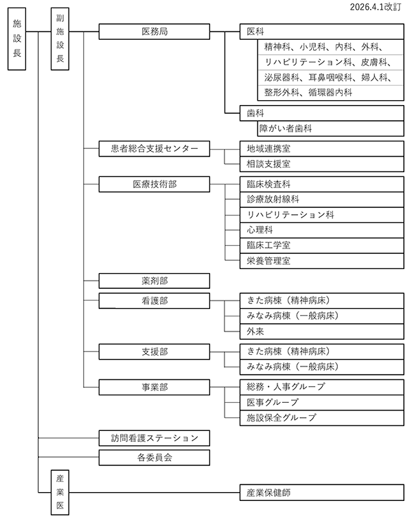| 定員 | 入所105名[医療型障害児入所施設(18歳未満対象) 療養介護(18歳以上対象) ] 短期入所/みなみ棟5名(併設型)、きた棟(空床型) |