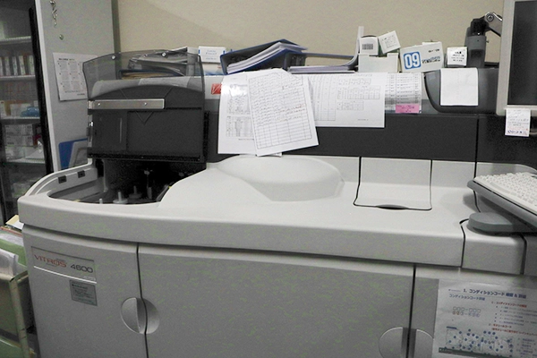 用いる分析装置や試薬は吟味を重ね、当院御利用の患者さんに最適となるよう検査項目を揃えています。ほとんど検査結果は、一部を除き当日中にしかも30分程で先生方のもとに届きます。